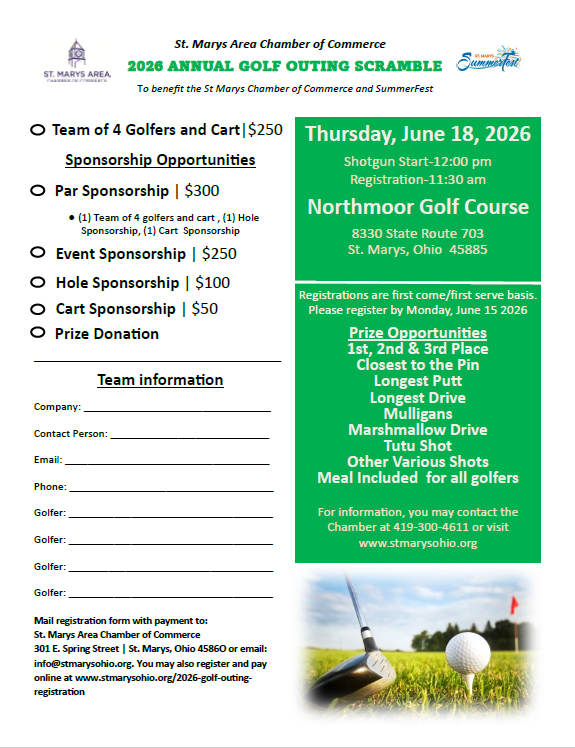 The last directory was printed in 2021 so it is time for an update! Have your business be highlighted when visitors, new businesses and the general public stop in wanting to know more about St. Marys! Plus, be highlighted on our website as well! For more information, email us at info@stmarysohio.org.